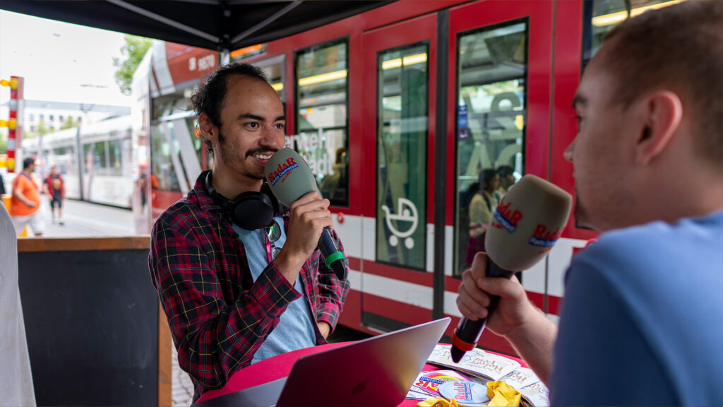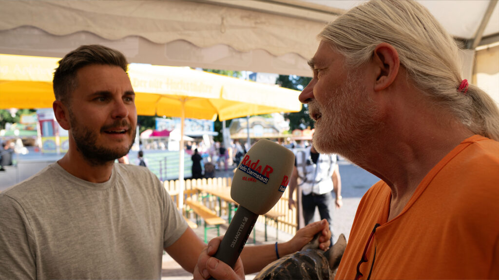 Auch Radio Darmstadt mit seinem Trägerverein RadaR e.V. hat seine Ursprünge auf dem Heinerfest. Vor 30 Jahren ist Radio Darmstadt als Veranstaltungsradio gestartet, das in Hessen einen kulturellen Anlass wie das Heinerfest voraussetzt. Weitere Veranstaltungsradios sind Antenne Bergstraße als Radio zur interkulturellen Woche in Heppenheim oder Radio Wein-Welle rund um das Winzerfest in Groß-Umstadt. Nach zwei Jahren Heinerfestradio erteilte die hessische Medienanstalt dem Verein als erstes nicht-kommerzielles Lokalradio (kurz: NKL) die dauerhafte Sendelizenz. Dennoch mahnt Vorstandsmitglied Benjamin Hasenpflug, die Wurzeln nicht zu vergessen. Der 22-Jährige ist durch sein FSJ-Kultur zu RadaR e.V. | Radio Darmstadt gekommen. Er betrachtet Radio Darmstadt als Gemeinschaftsprojekt aller (Wahl-)Heiner:innen, das vom Rauskommen, Anfassen und der Nähe zur Stadtgesellschaft lebt. Nach zehnjähriger Pause hat er 2024 das Heinerfestradio live vom Festgelände initiiert. Durch sein Studium hat Benjamin insbesondere allgemein-organisatorische Aufgaben übernommen, die sich Remote erledigen lassen.